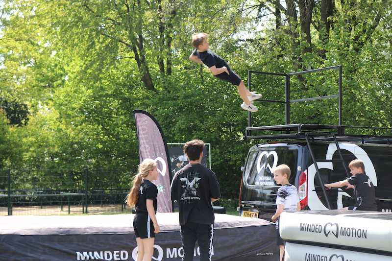 Our Minded Motion bus is fully equipped with fun obstacles, allowing children to fully unleash themselves. We bring airtracks, airblocks, and other obstacles, among other things. All you need is a suitable location - grass or a playground, and we'll turn it into a party!